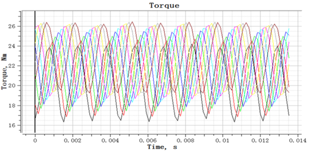快適な乗り心地を提供するために、巻上機の設計では高調波の抑制、特に低次高調波(快適性に大きな影響を与える)とその力波振幅の抑制と低減(図8)、さらには低速トルクリップル(図9)とコギングトルクの低減にも特別な注意を払っています。これにより、エレベーターはプロセス全体を通じて低騒音、低振動でスムーズに動作し、乗客に快適な乗り心地を提供します。