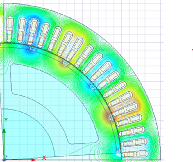 グリーンで低炭素な旅行に対する世界的な支持を背景に、鉄道交通建設ではエネルギー節約に対するより高い要件が求められています。したがって、他のエレベーターと比較して、地下鉄エレベーターは、乗客の流動が多い都市のシナリオに対応するために、より高い効率を備えた巻上機を必要とします。速度が約 1 m/s のエレベーターの場合、効率は最大 90% に達します。さらに、エレベータ設置の要件の下では、巻上機の重量とサイズを制御する必要があります。したがって、巻上機の設計エンジニアは、電磁設計の豊富な経験を持ち、高度な電磁界解析ソフトウェア(図5)を使用して電磁設計を最適化し、要件を満たす適切な電磁材料を選択する必要があります。