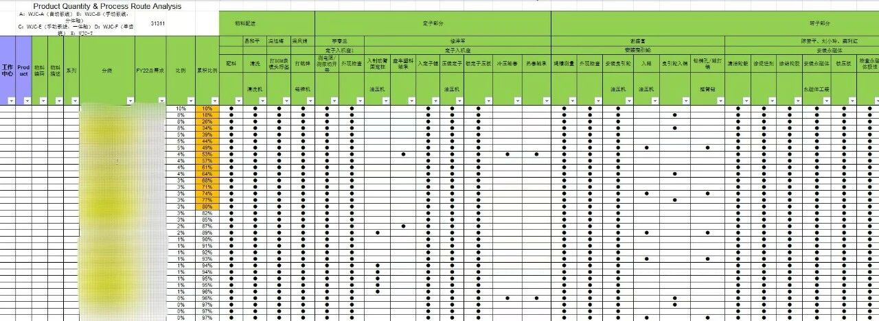 PQPR (Product Quantity Process Routing) 分析を通じて、チームはさまざまな製品間のプロセスの違いを特定し、製品を分類し、生産ラインを合理的に配置して生産効率を向上させました。