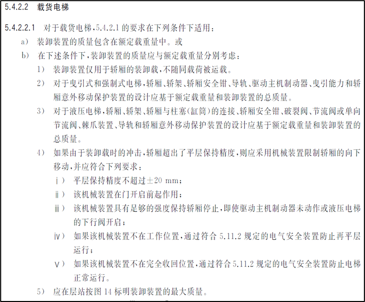 • 国家規格 GB 7588-2003 の古いバージョンでは、セクション 8.2.2 で、貨物用エレベーターの面積は「効果的な制御」の条件下で適切に緩和できると規定されていました。