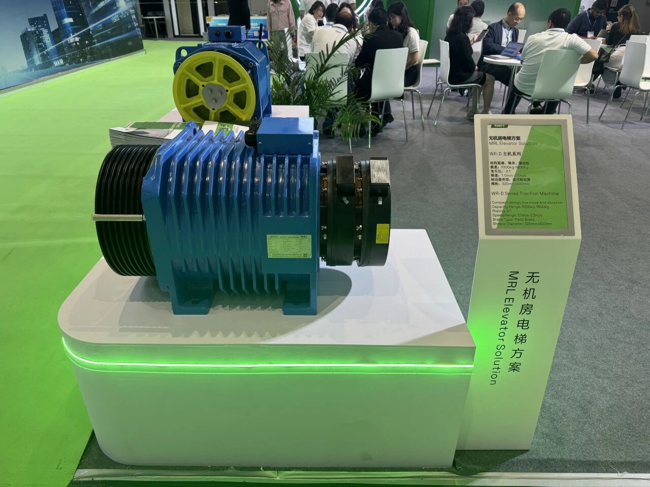 さらに今回のWEEには、海外でベストセラーのWR-Dシリーズのバレル型機も持ち込まれた。コンパクトな設計により製品の高さを効果的に圧縮し、スリムな構造により、要求の厳しいトップレベルのプロジェクトのニーズに応えます。 WR-D の場合、シーブ寸法 400mm の場合、最大積載量は 1600kg、エレベーターの最高速度は 2.5m/s です。